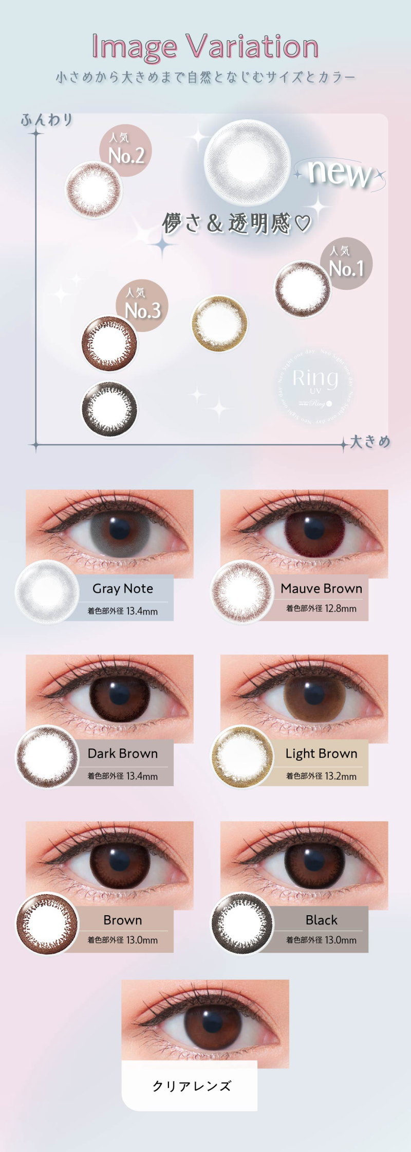 ・レンズカラー:グレーノート モーヴブラウン ダークブラウン ライトブラウン ブラウン ブラック